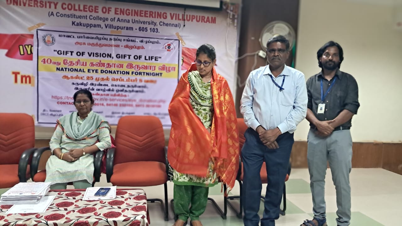 “NATIONAL EYE DONATION FORTNIGHT” was held on 08/09/2025 at University College of Engineering Villupuram.