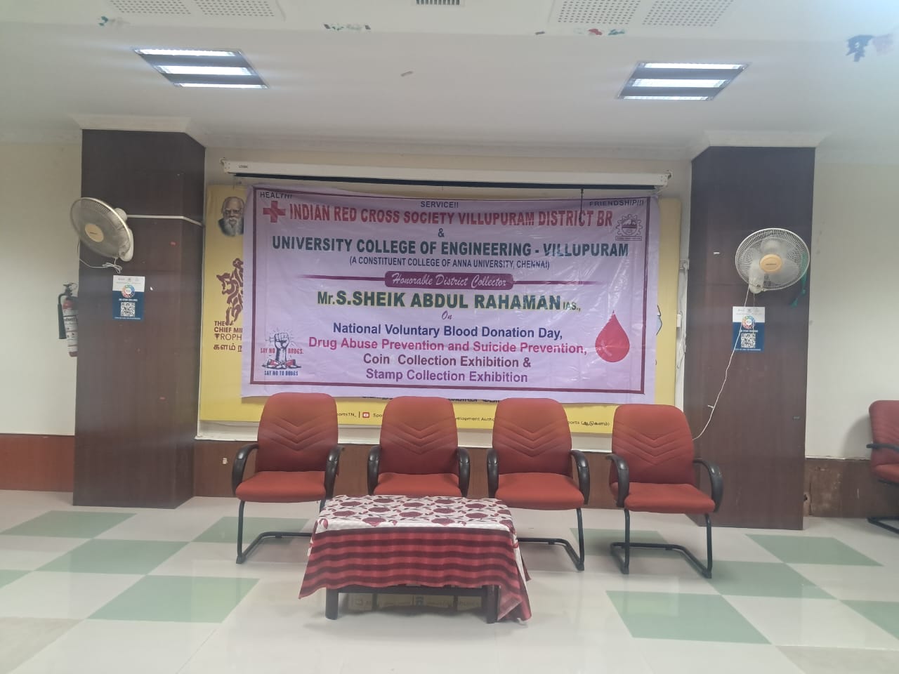 “NATIONAL VOLUNTARY BLOOD DONATION DAY-2025”, Drug Abuse Prevention and Suicide Prevention programme, Coin Collection & Stamp collection Exhibition programmes were held on 08/10/2025 at University College of Engineering Villupuram. Welcome address given by Dr.D.Palani, Asst. Prof./ECE Presidential address given by Dr.R.Senthil Prof & Dean and Chief guest address given by Dr.K.Thirumavalavan, Chairman, Indian Red Cross Society, Villupuram Municipality, Villupuram.